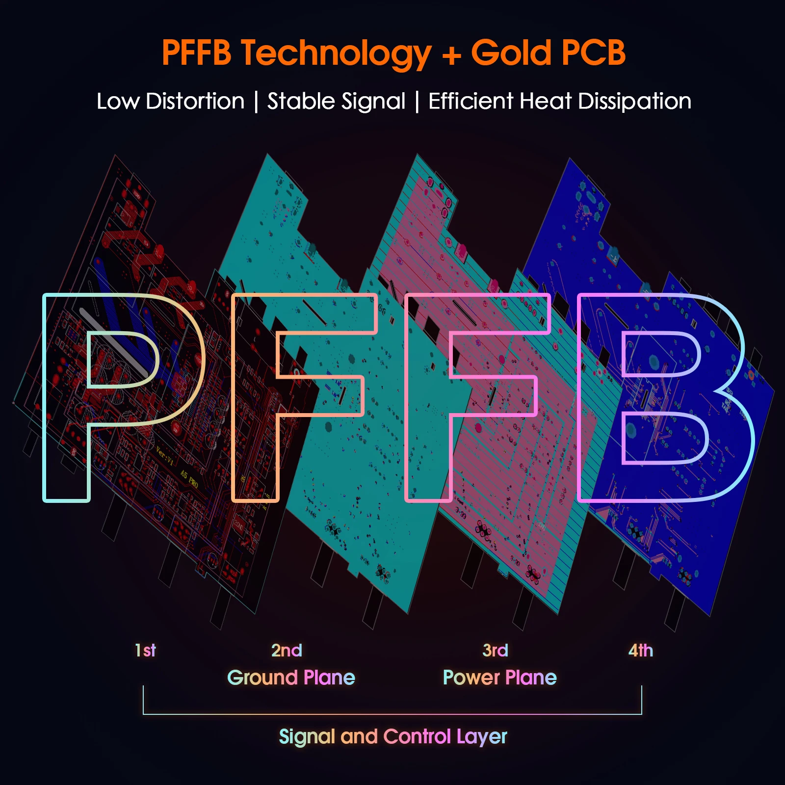 PFFB 기술 및 고성능 PCB: 포스트 필터 피드백 기술 회로와 4층 침수 금 PCB로 제작된 이 디지털 앰프는 왜곡을 줄이고 주파수 응답을 향상시킵니다.비교할 수 없는 오디오 정밀도, 향상된 신호 무결성, 효과적인 열 관리를 즐겨보세요.